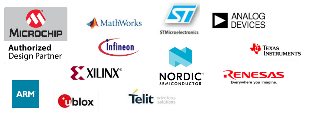- Microchip/Atmel, Renesas, STMicro, ARM Cortex microcontrollers, Infineon motor control