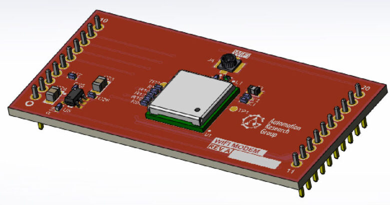 2″ × 1″ board, Samtec headers on 2mm centers. Every ARG comm module — cellular, Wi-Fi, Power Line, Modbus — fits the same footprint on the host PCB.